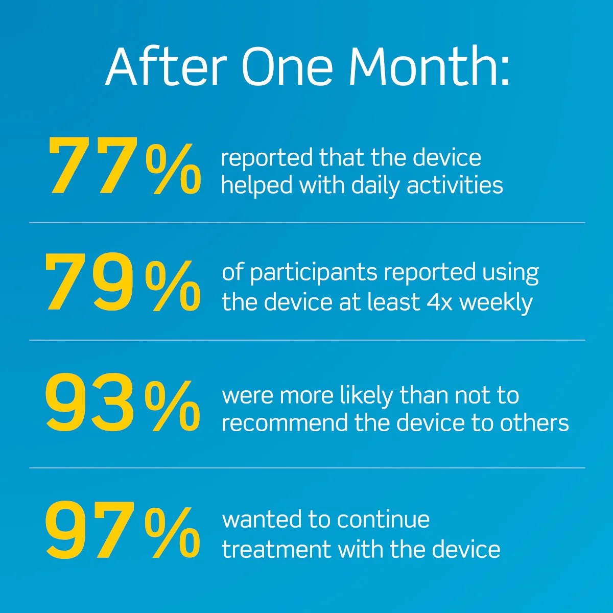 Methods: A retrospective survey review of patient-reported pain and activity outcomes among 1,479 veterans in the Veterans Affairs Health Care System who used the RS-4i® Plus Sequential Electrical Stimulator (device) with Intersperse for one month, and 209 veterans who used the device for six months. We compared follow-up surveys to baseline.